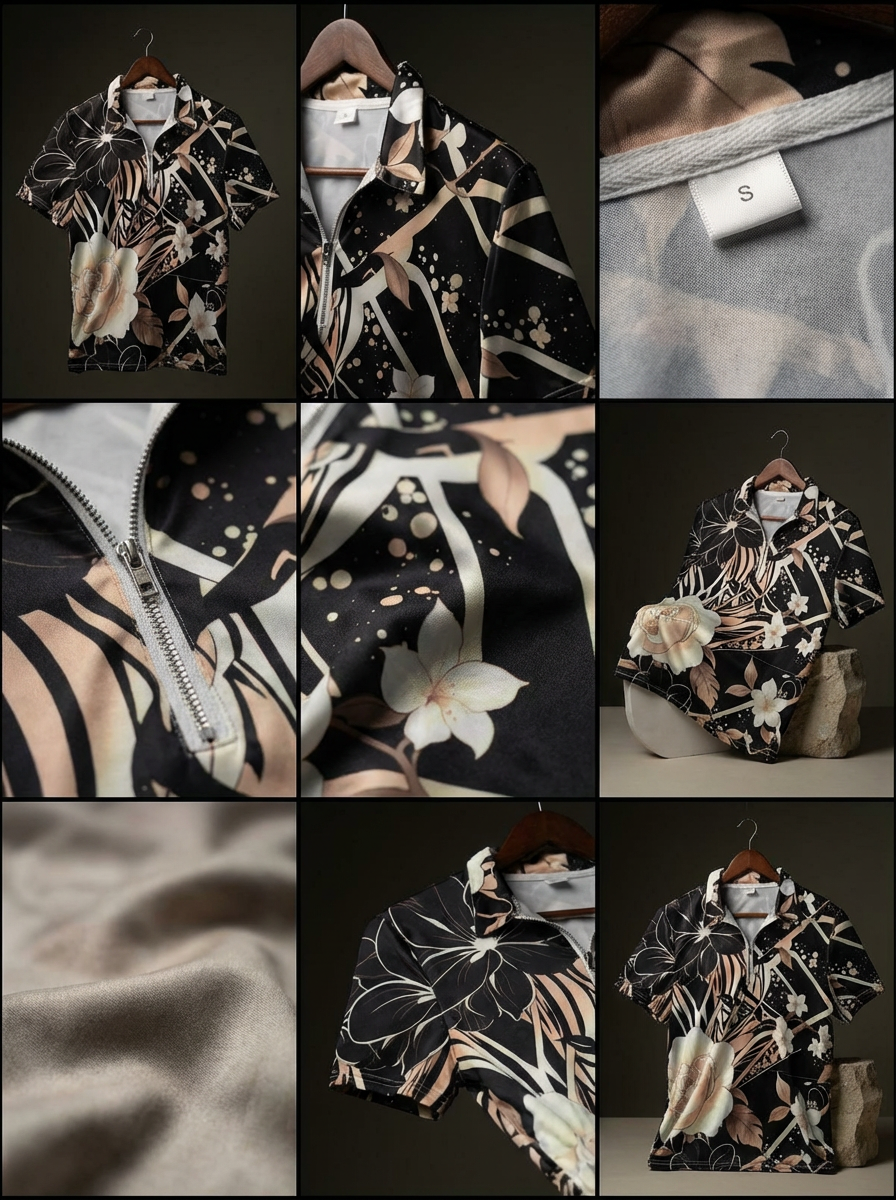 Each design variation presents a distinct interpretation through unique patterns and tonal palettes. Versatile by nature, the zip polo transitions effortlessly from casual wear to elevated settings, pairing seamlessly with denim, tailored trousers, or swim-ready looks.