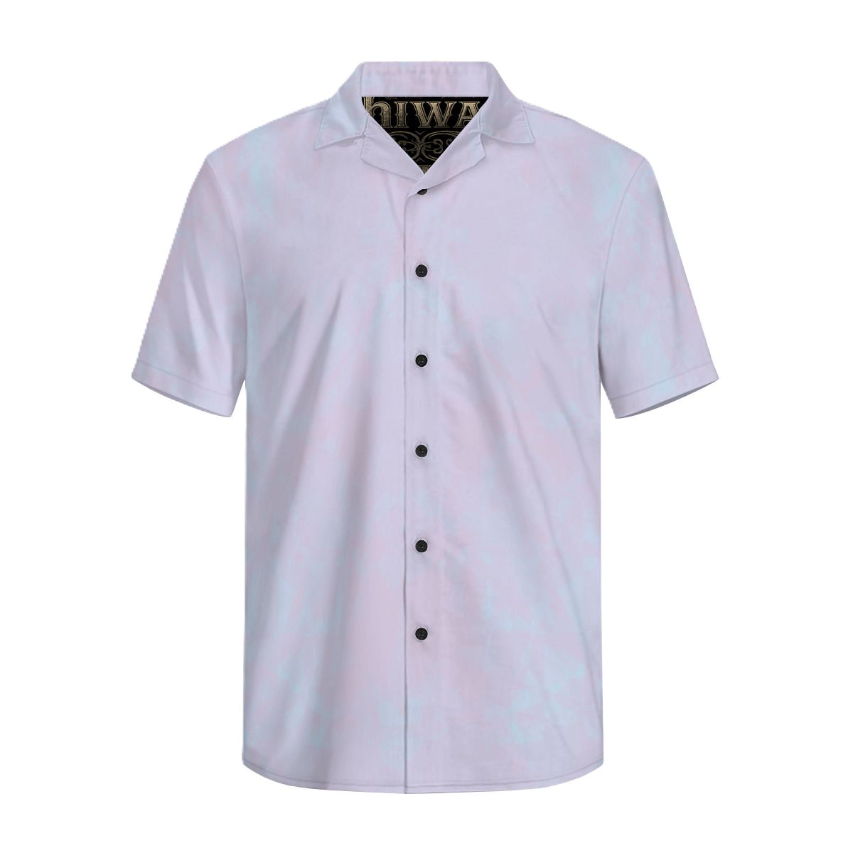 - Pearlescent short-sleeved button-up Chiwaiian shirt.